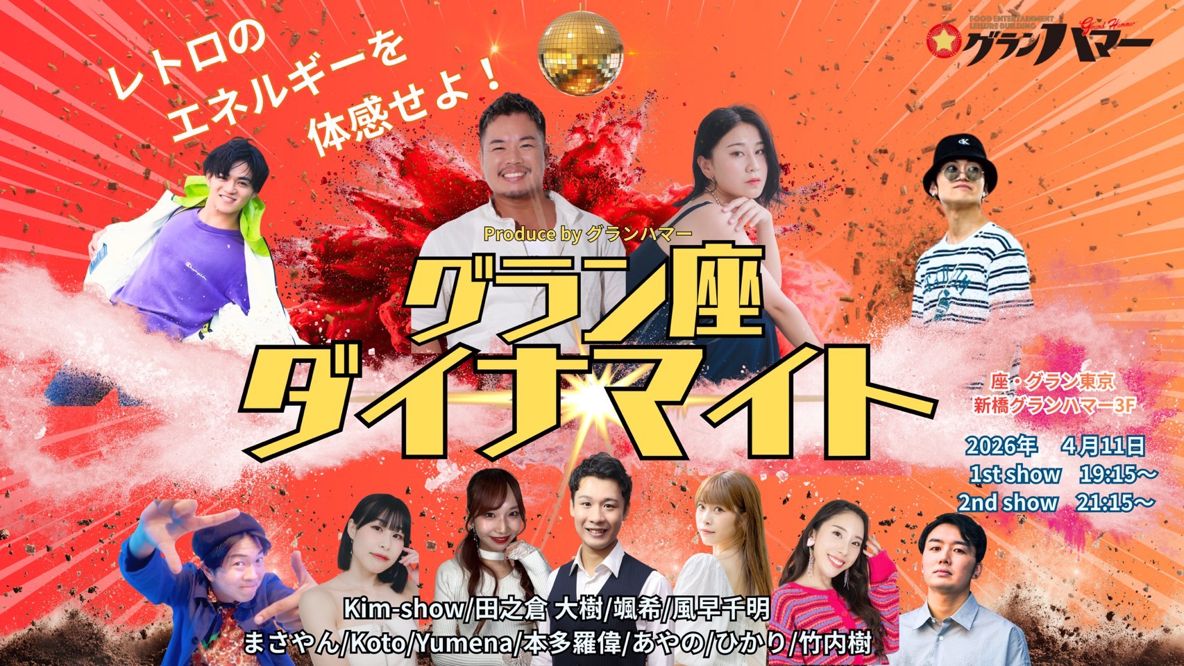 昭和と平成の名曲を舞台に、歌・ダンス・アクロバットが織りなす30分のノンバーバルエンターテイメント。時代を越えて蘇る「グラン・座・ダイナマイト」が、心に眠る情熱を呼び覚ます。